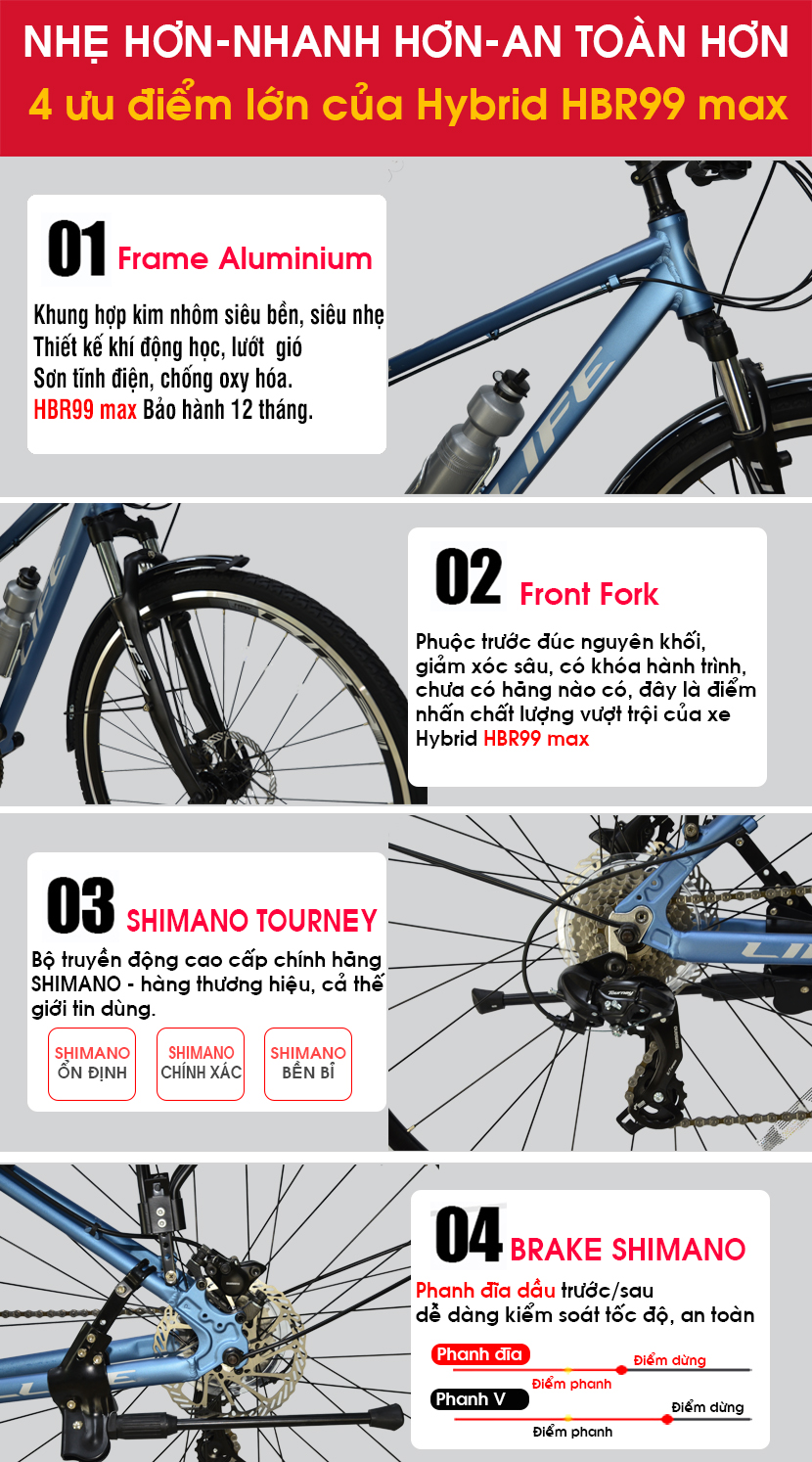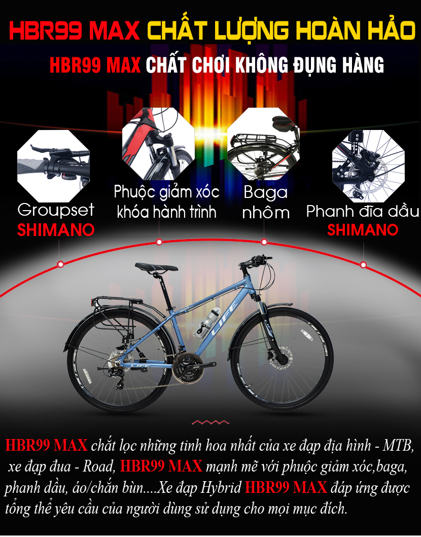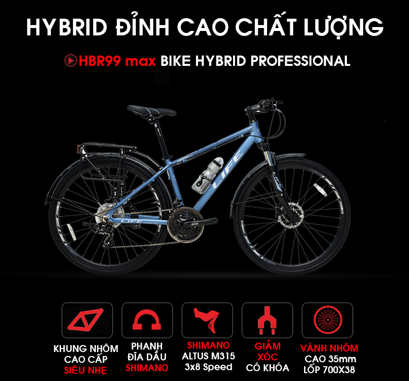 LIFE Hybrid HBR999 MAX thiết kế Full nhôm cao cấp kết hợp sét đồ Shimano nhưng giá rất hợp lý.