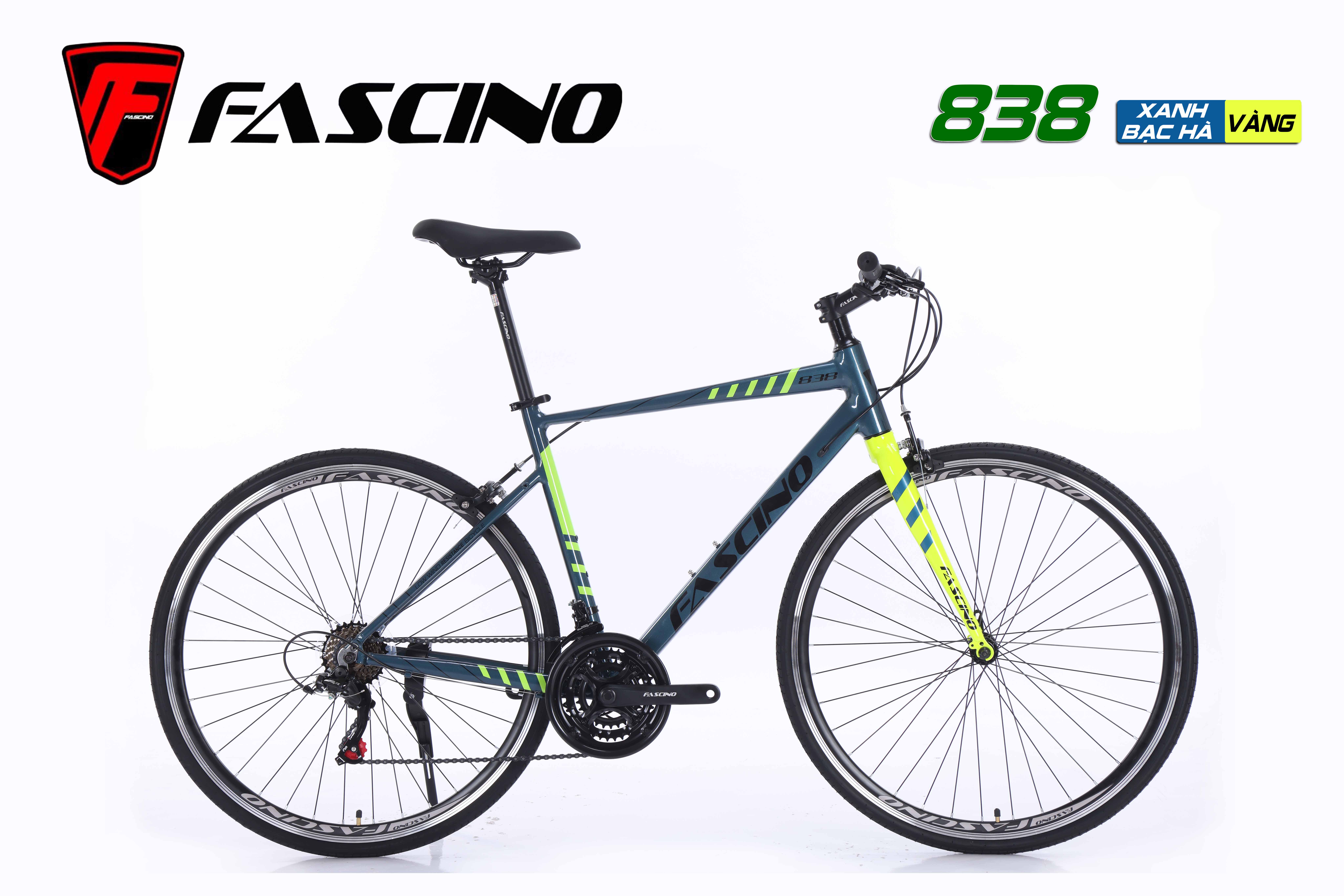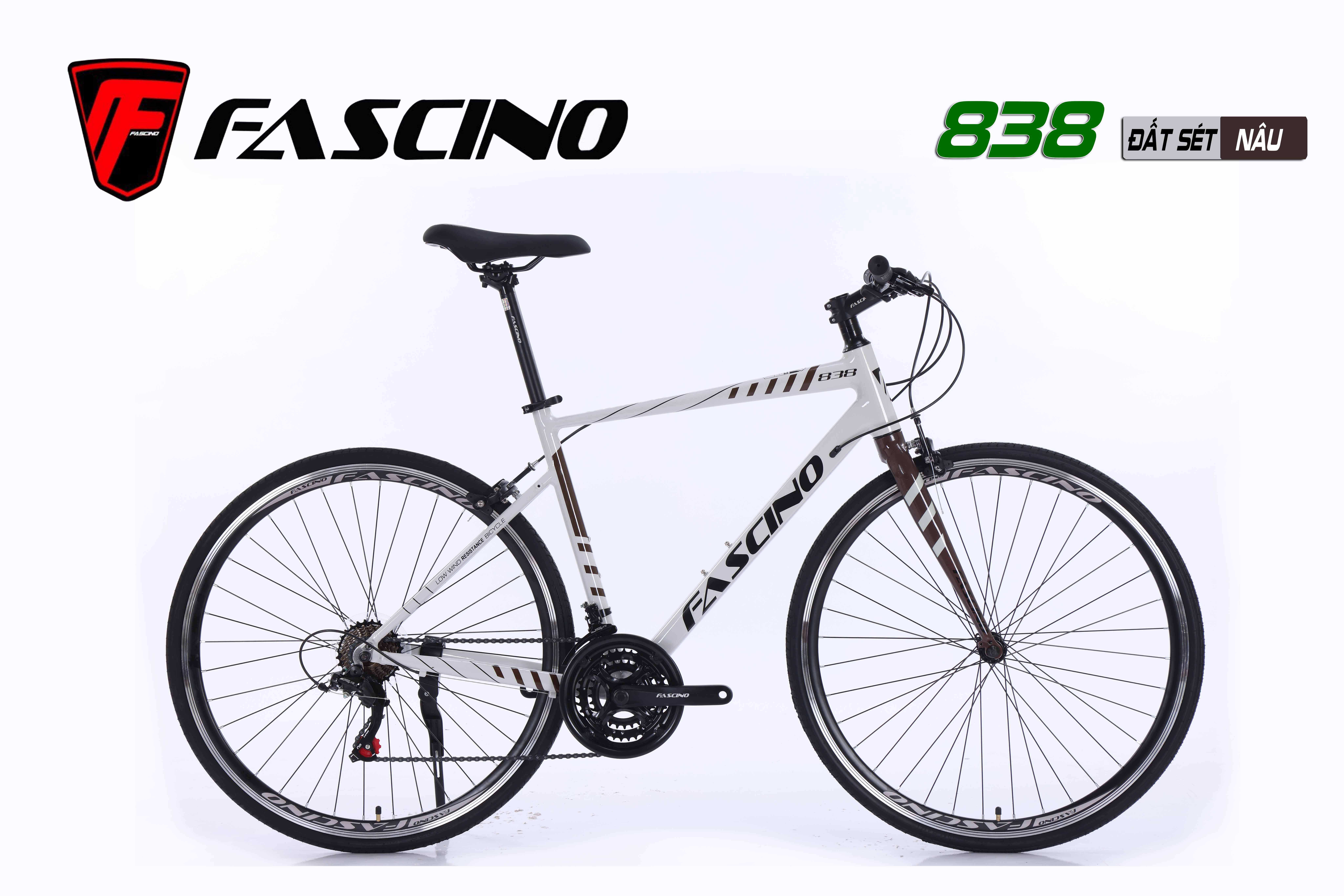 Xe đạp Touring FASCINO 838 là sản phẩm xe đạp Touring được ưa chuộng trên thị trường hiện nay nhờ kiểu dáng trang nhã, chất lượng và giá rất hợp lý. Xe FASCINO 838 với khung Nhôm không mối hàn sơn tĩnh điện, trang bị groupset SHIMANO 21 tốc độ, vành hợp kim nhôm 2 lớp, cổ lái hợp kim nhôm, phuộc đơ, phanh V. Xe thanh thoát, di chuyển nhẹ nhàng, đảm bảo độ bền, hoạt động ổn định với mọi địa hình, tốc độ. Phù hợp cho mọi cầu thể dục thể thao, đi học, đi làm... đều rất hợp lý.