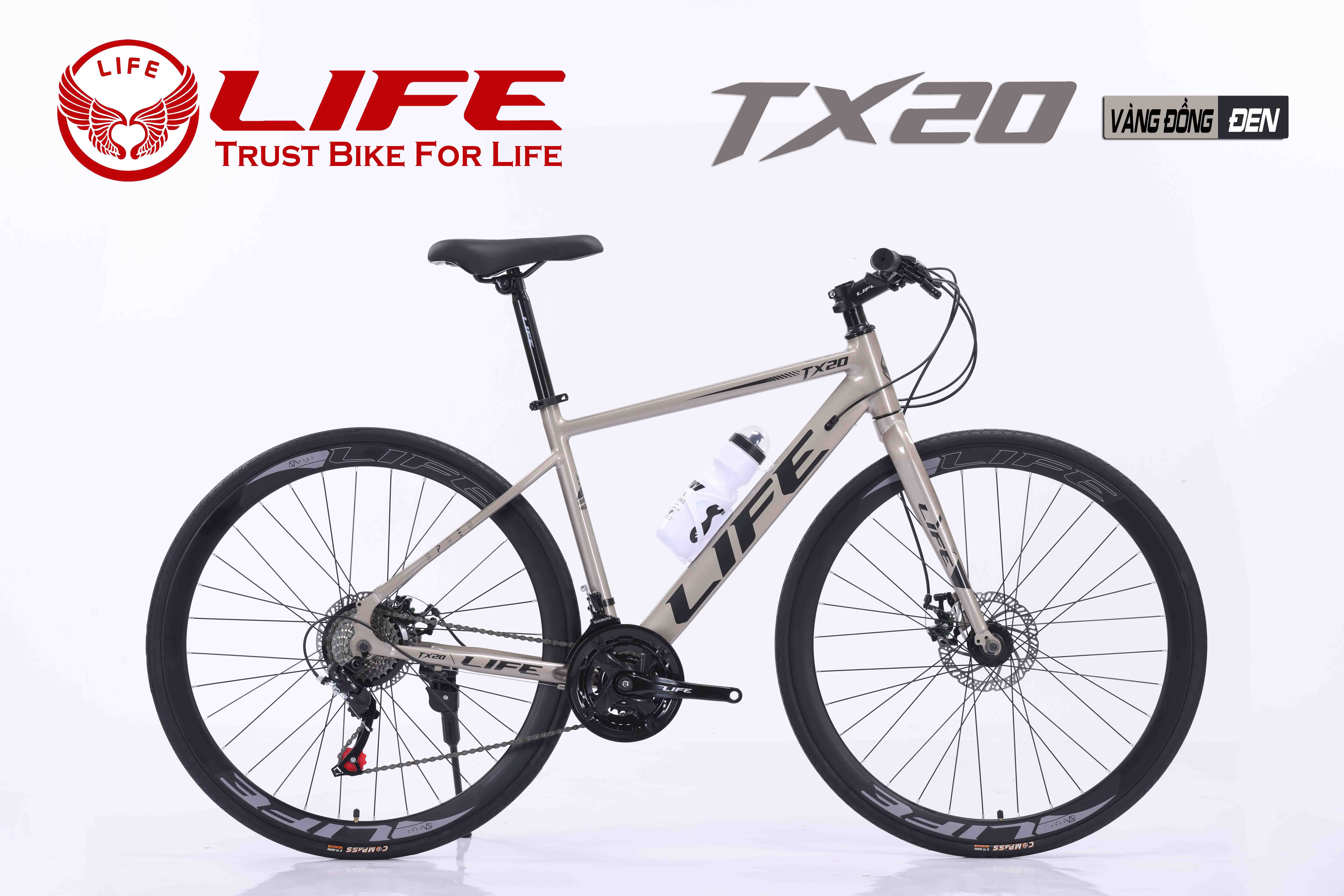 LIFE TX20 là mẫu xe đạp touring khung thép được thiết kế theo phong cách khí động học hiện đại, tạo nên vẻ ngoài sang trọng và thời thượng. Xe sử dụng cáp âm khung cùng các đường nét tinh gọn, giúp tổng thể trở nên hài hòa và ấn tượng hơn khi di chuyển.
